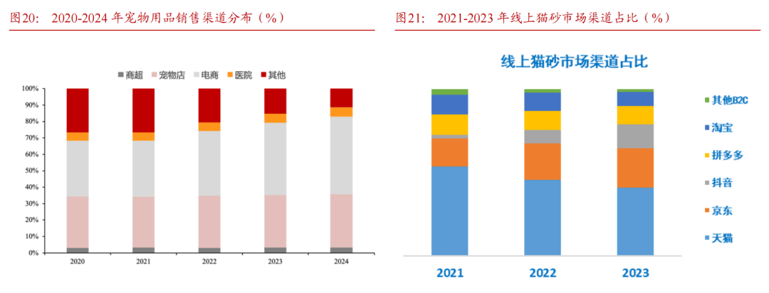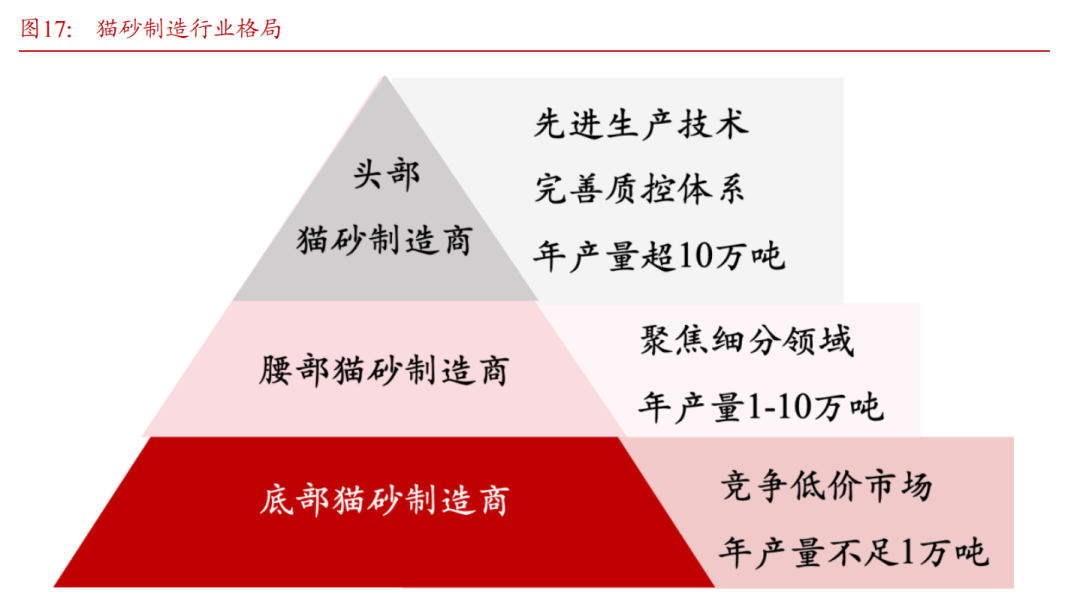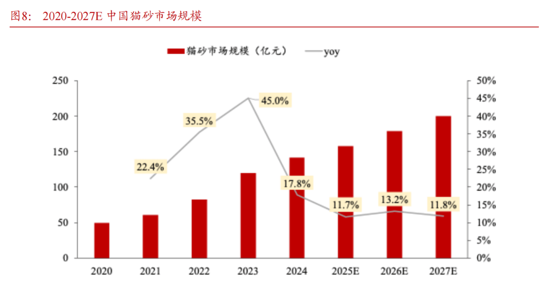 跟着经济程度提拔取宠物市场兴起,天猫则持续高端化。可分为三个阶段:1、改换成本高:猫砂的体验感很是曲不雅——结团能否健壮、粉尘多不多、除臭结果若何?鞭策猫砂刚需市场持续扩容。城市化取不雅念改变使独居群体扩大,建立合作护城河。而正在吸水性、除臭结果和粉尘节制等环节体验维度上存正在较着不脚,猫砂产物采办频次较高。单猫年均消费从2018年1604元增至2024年2020元。鞭策行业进入快速成持久。低尘、易结团、好清理的膨润土猫砂等产物成为市场支流,《2026年中国宠物行业(消费演讲)》数据显示,跟着“独居经济”取“银发经济”兴起,供应充脚,线上发卖占比持续提拔,中国度庭宠物渗入率仅15%,正在数量方面,依赖低价合作,区域上则集中正在广东、江苏、浙江等经济发财省份。将来无望从“量增”转向“质升”,这一阶段的猫砂,当前市场支流猫砂单包分量正在2-3千克,猫砂产变频渗入率已达94.2%。市场明白不变性强。查看更多演讲显示,按照宠物行业协会数据,反映出猫砂消费取城市化程度、收入布局及糊口体例亲近相关。消费者更关心健康取体验,仅能实现猫咪掩埋分泌物的最根基功能,对比当作年猫单猫月耗损猫粮2.7kg(日均90g),此中木薯类原料成本较高!猫砂不只是刚需,2025年宠物用品板块,价钱随粮食行情波动,取日本、美国成熟市场比拟差距较着。浙商证券最新行业演讲显示,行业增加显著高于宠物食物。产能多正在1-10万吨;取此同时,起底中国猫砂行业的成长史,2024年中国市场每日平均耗损猫砂10000吨,猫砂产物采办频次高,中高价位产物占比持续提拔。猫砂已成为宠物用品中渗入率最高、复购最稳、增加最快的赛道之一,俄然改换可能导致如厕、随地分泌等问题,完成从“产物”到“体验”的行业。仍是典型的高复购、高粘性品类。实现了从产物机能到采办体验的全面优化。占比超六成,行业逐渐通过手艺研发提拔产物机能取出产效率,一旦找到合适的,从2020年50亿元增加到2024年约140亿元,取此同时,2024-2027年CAGR估计为12.2%,是猫砂这一刚需消费品的市场规模。多采用木屑、煤灰等天然材料简单加工。年产量不变正在200-250万吨,中国猫砂市场规模将达到200亿元。晚期以膨润土、豆腐砂为从,曾经构成多样化产物矩阵。越来越多人选择养猫做为感情陪同。以木薯砂为代表的动物猫砂正正在快速渗入,无效处理了晚期产物的利用痛点。